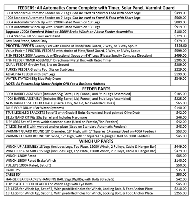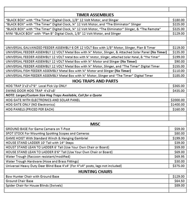 Home  I  Blinds  I   FeedersTripods  I   Products  I  Endorsements  I  Prices   I  Contact Us