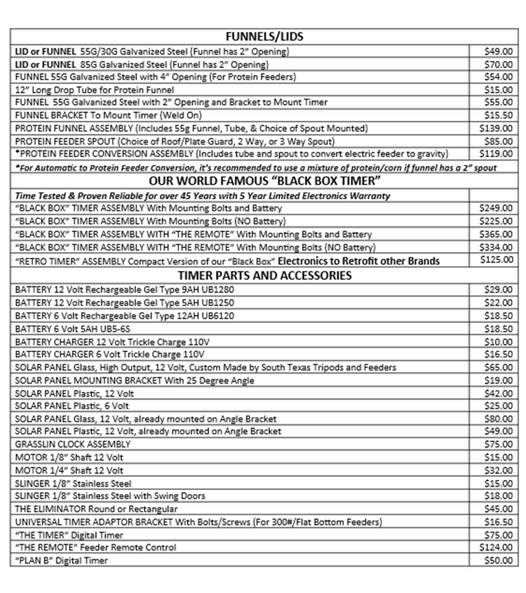 Copyright © 1995-2023 South Texas Tripods and Feeders - www.southtexastripodsandfeeders.com - All Rights Reserved.